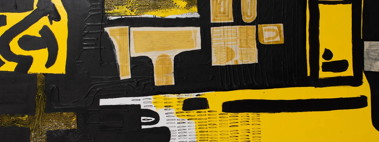 This painting is part of a series where I experimented with various techniques, materials, and textures to create dynamic compositions and surfaces. Combining oil paint for metal, collage, and other elements, it reflects both my personal experiences and my exploration of new artistic possibilities.